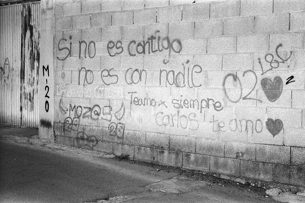 I started and finished this roll in Segorbe but on consecutive weekends, with the intervening weekdays in Valencia evidenced on one or two frames. The first couple of frames I’ll share here are as I tried to focus more on textures in the old town than the faded colours I’ve often photographed before. I finished off the roll wandering around vacant lots, a subject that continues to intrigue me. I’m not convinced that Black & White is the best medium for this subject, but you never know until you try.
