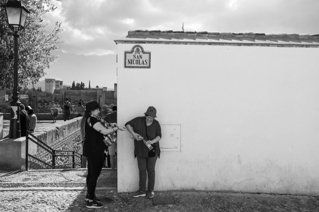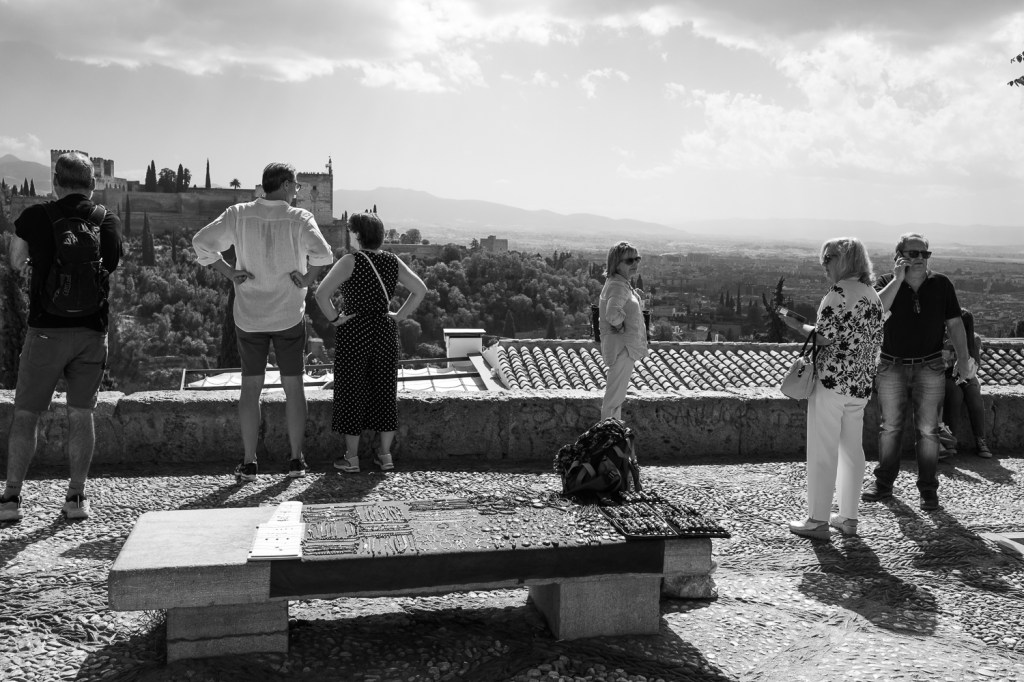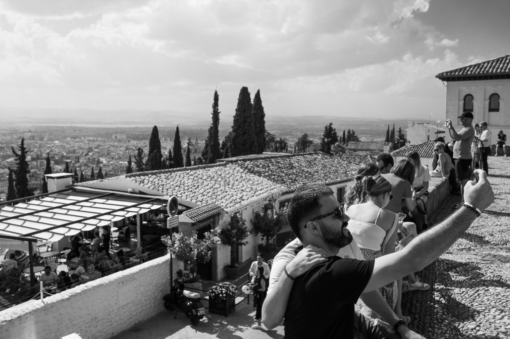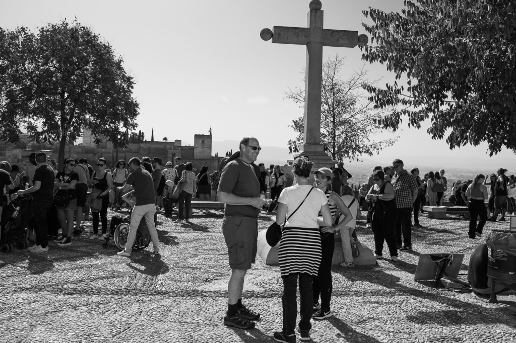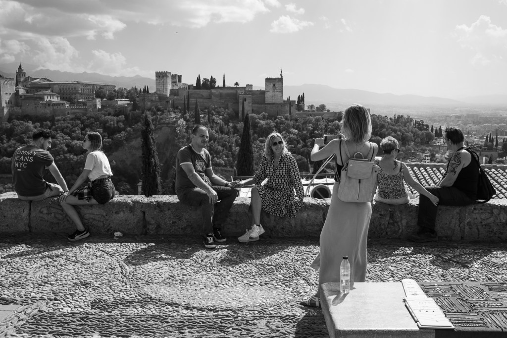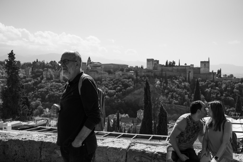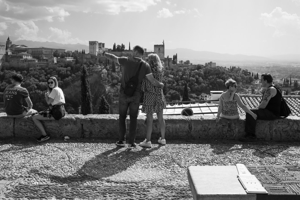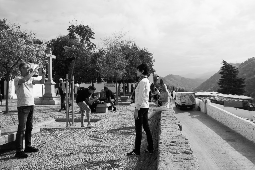 From there I headed up the Paseo de los Tristes a little way before hanging a left to try and zigzag my way uphill to Mirador San Nicolás. Having made it, I decided to use my cover as a tourist to … photograph other tourists with the Alhambra as a nice, dramatic backdrop.