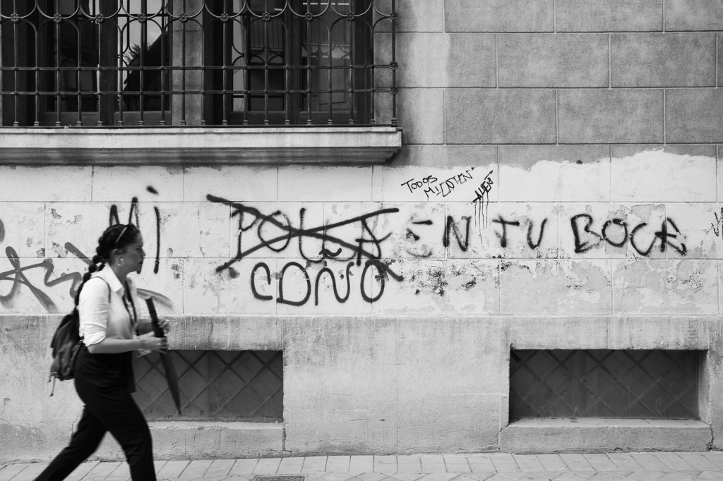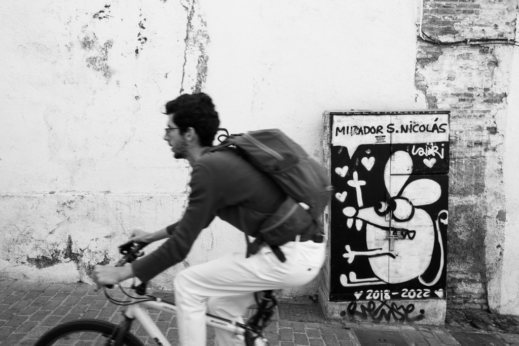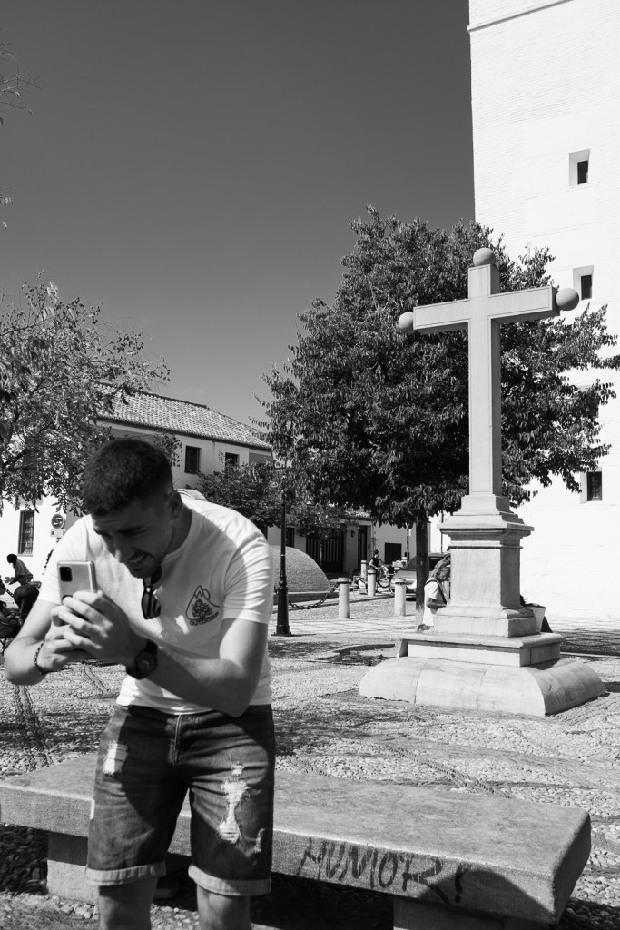 On the walk in towards the centre, I found myself reverting to my old habit of photographing ‘things’ – objects, often ones discarded on the floor; walls, and other inanimate objects. While there’s nothing wrong with this, I’m also pretty sure I do this because it’s easy, unchallenging and available in pretty much endless supply. It does also lead to a lot of photographs I ultimately don’t care about, forget that I’ve made or easily confuse or conflate with other similar photographs of little real consequence. Passing through the walls at Puerta de Elvira into the old part of the city, I made a note to myself to try and start including some people in my photographs.
