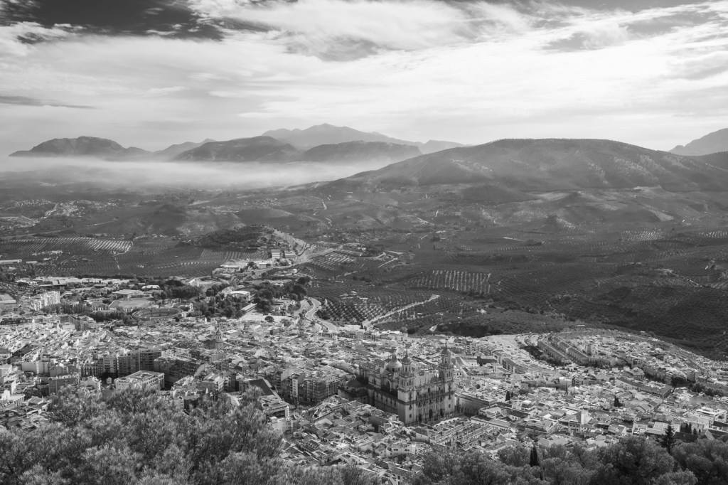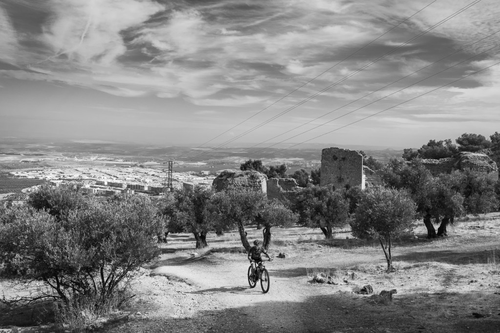 Rounding this last bend we could see the castle and understand the reaction from the locals, it was at least a couple of kilometres walk away still, along a road which lead out towards the forest before switching back to our destination. Good exercise and on the way we saw a couple of red squirrels, met an interesting forest fire marshal called Clemente and a keen cyclist named Manuel who stopped to chat with us as the only other people arriving at the castle under their own steam. The views were well worth every step of the way on their own. Andalucía is a huge area and often this means that you suddenly find yourself considerably higher up than you had realised with breathtaking views to a long-distant horizon. In this case there was that to one side as we were suddenly a long way above an endless rolling sea of olive trees, while on the other side were the mountains separating Jaén from Granada with early morning mist still to rise from the nestled valleys.