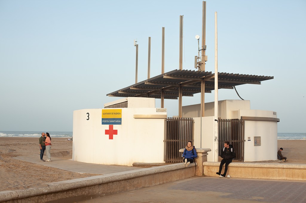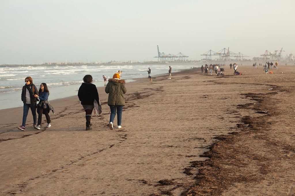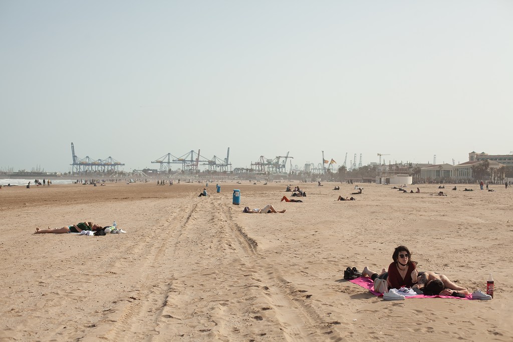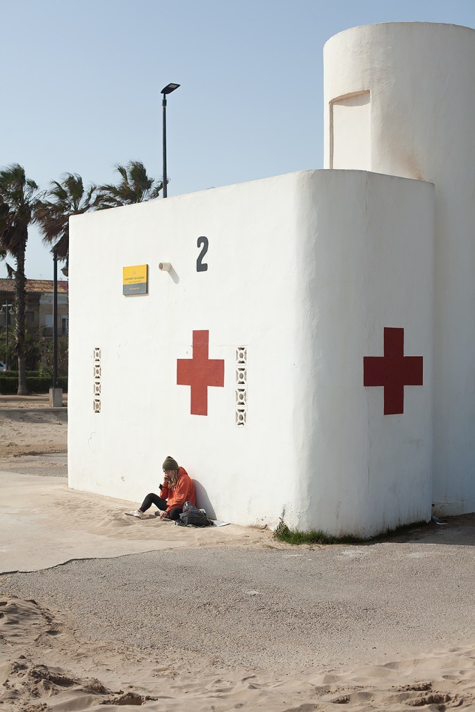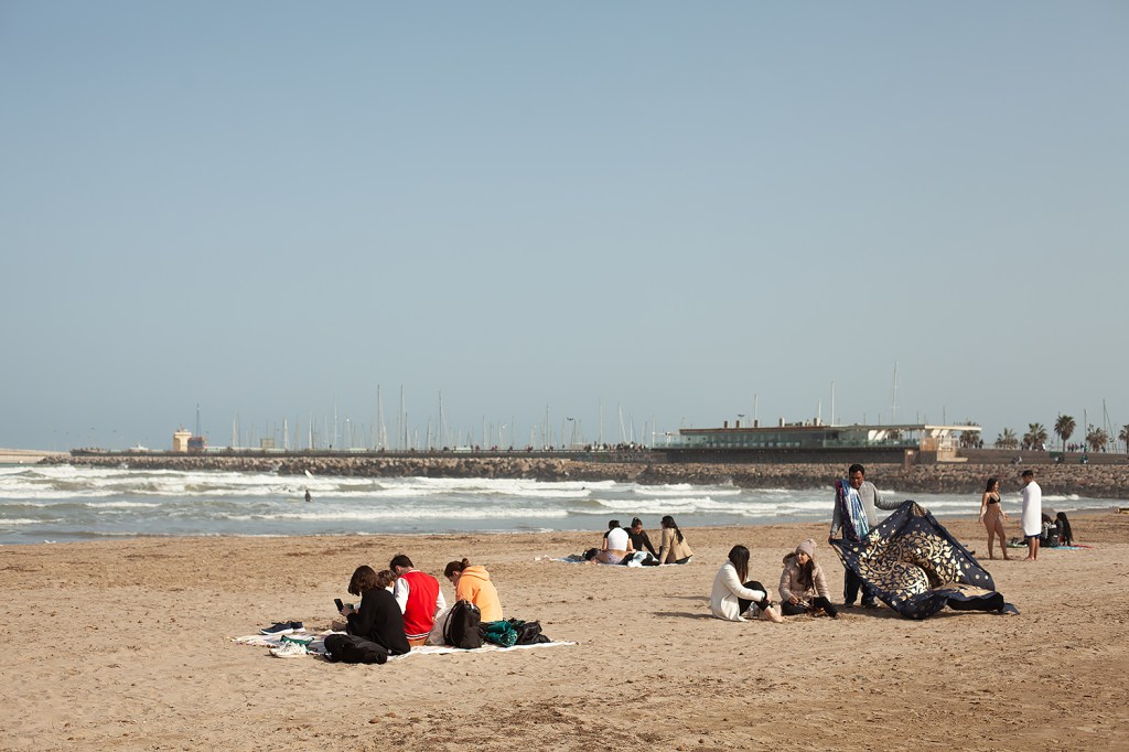 As in Granada later in the year, though, I decided to ‘push myself’ out of my ‘comfort zone’ (naturally, this being a blog post about creativity on the Internet) of photographing the effects of winter on the beach’s infrastructure, and start to try and include some people in the photographs. The result are some photographs that to me show everyday life and people enjoying a bright Spring day on the Malvarrosa.