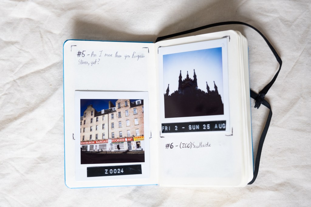 Also successful was the convenient timing of this trip in sorting out the cover image for this year’s Edinburgh programme. My decision to buy a vaguely retro format camera also aided with a continuation of last year’s cassette-based aesthetic and we’d decided to go with instant photographs for this year. I had already made pictures of our two main venues while up in Edinburgh. As individual images I wasn’t all that happy with them as the dynamic range of each scene had been far too great for instant film to really handle well, but within the overall design they would actually work quite well. I was much happier with the picture of the iconic Edinburgh Bargain Stores and pushed for its inclusion as a key festival landmark and place which has probably kept my department, if not the whole venue, running on countless occasions. We just needed a fourth frame, and eventually settled on one of a mirrorball that, naturally, was in the house.